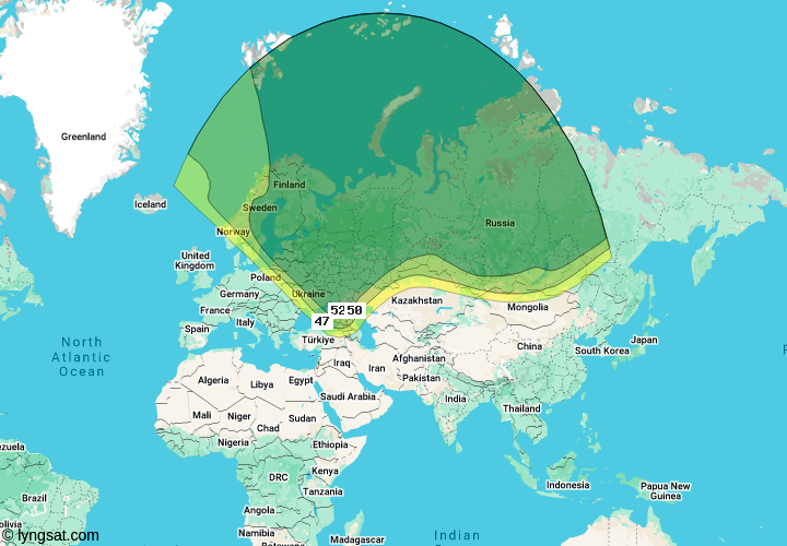 Сибирский спутник Express-AT1 (56 в.д.) широким лучем покрывает 70% территории России, кроме Якутии, Камчатки, Сахалина и Дальнего Востока.